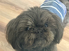Joey is an adorable, sweet little 8 year old charcoal Shih Tzu who weighs 8 pounds. Now you would think that a pup that small would be timid and shy. Not Joey, he has a big personality in that little body. He is quite sure he is the center of the world and is very vocal about it when things are not to his expectations. He absolutely expects to sleep in the bed with you, or no one will be sleeping. He loves his foster mom’s bed and often wants to take an afternoon nap there.